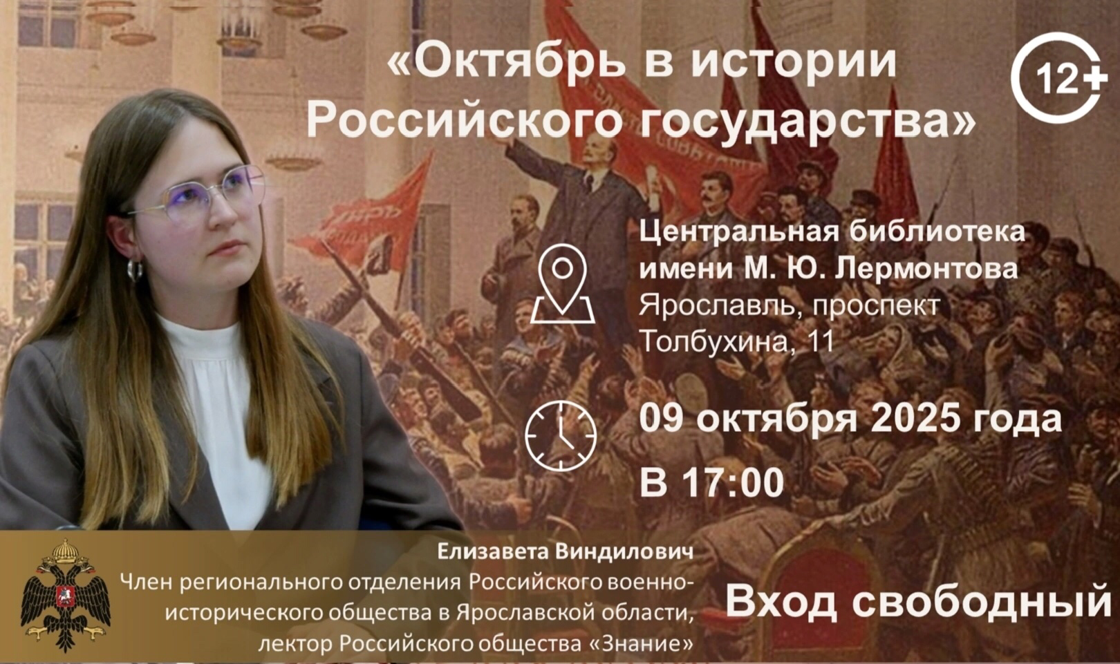 9 октября 2025 года в 17:00 в Центральной библиотеки имени М. Ю. Лермонтова продолжит свою работу Клуб «Краеведческие встречи». Новая тема: «Октябрь в истории Российского государства». Лектор Российского общества «Знание» — Виндилович Елизавета Читать далее