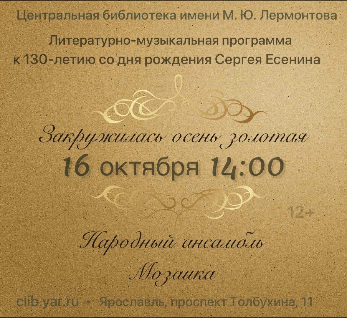 16 октября в 14:00 в Центральной библиотеке имени М. Ю. Лермонтова