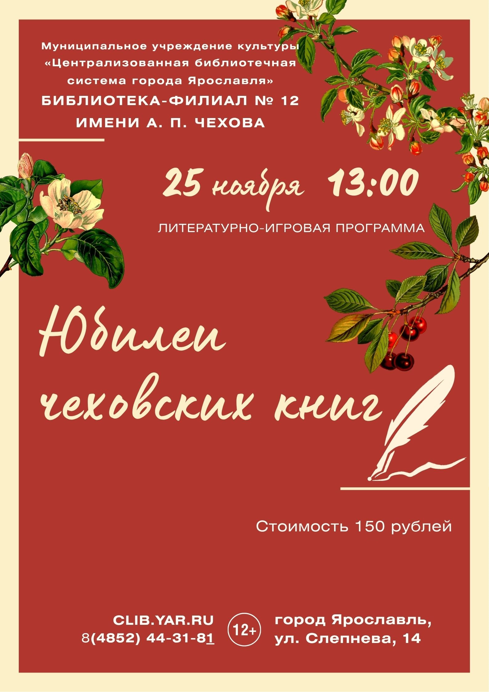 КУПИТЬ БИЛЕТ 25 ноября в 13:00 библиотека-филиал № 12 имени А.П. Чехова Читать далее