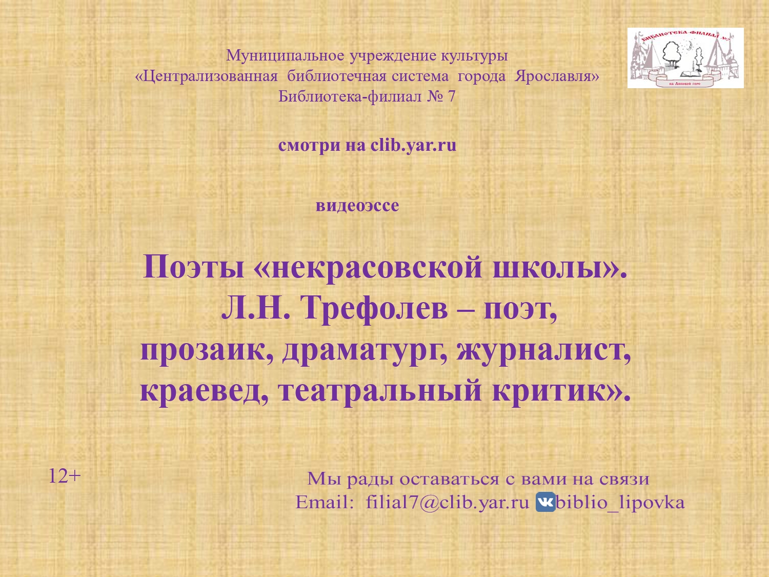 11 декабря 2025 года в Центральной библиотеке имени М. Ю. Лермонтова продолжил свою работу Клуб «Краеведческие встречи» с новой темой «Литературная гостиная: день рождения Н. А. Некрасова». Встречу провела лектор Общества «Знание», студентка Ярославского государственного педагогического университета имени К. Д. Ушинского Елизавета Виндилович. Читать далее