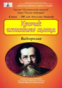 Библиотека-филиал № 12 имени А. П. Чехова представляет видеоролик «Кусочек истинного солнца», посвящённый 200-летию поэта Аполлона Николаевича Майкова.