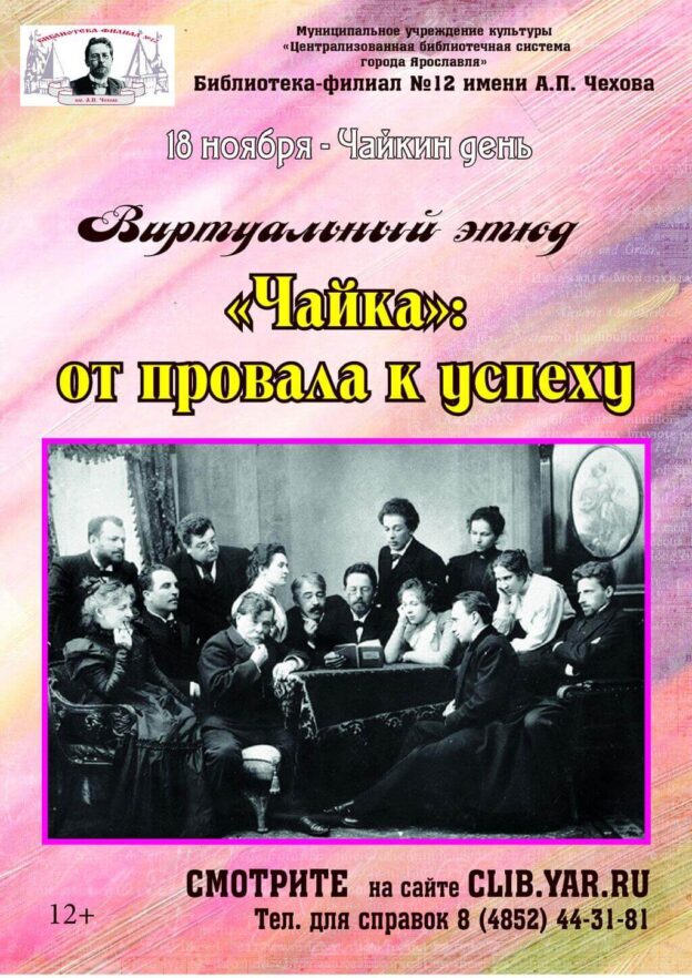 Библиотека-филиал № 12 имени А. П. Чехова представляет виртуальный этюд «Чайка»: от провала к успеху», приуроченный к Чайкиному дню.