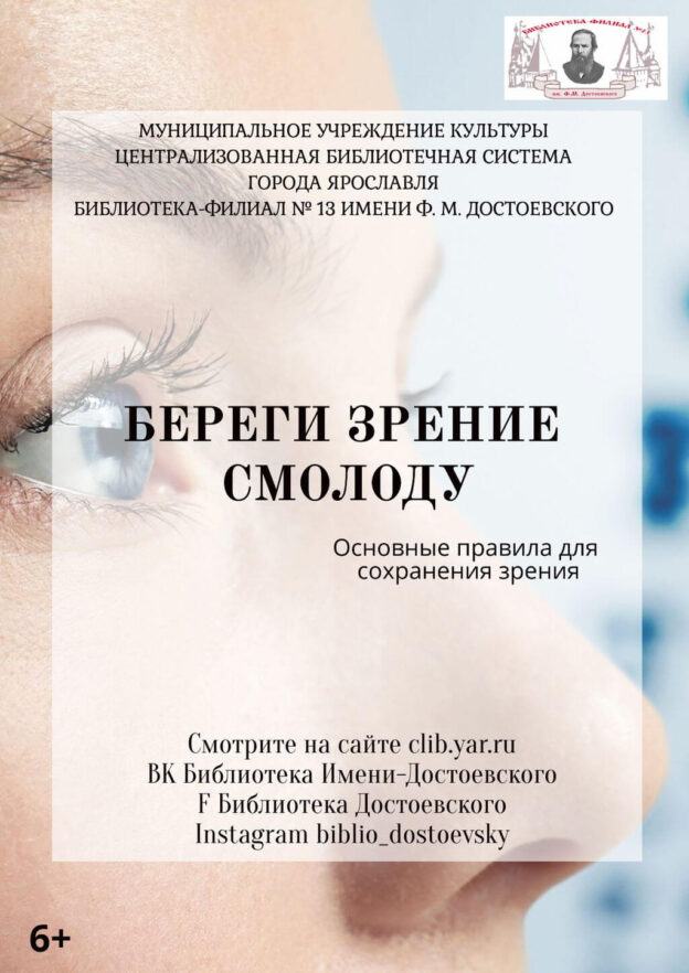 Библиотека-филиал № 13 имени Ф. М. Достоевского представляет видеопрезентацию «Береги зрение смолоду».
