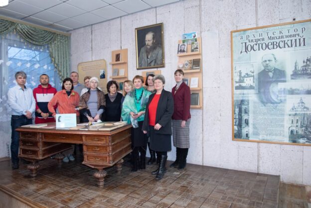 Встреча началась с экскурсии по залам школьного краеведческого музея «Память» имени А. М. Достоевского. Сергей Александрович Жогличев, руководитель международного сообщества «По следам Достоевского», секретарь московского отделения наградной коллегии ордена «Звезда Достоевского» торжественно вручил диплом руководителю краеведческого музея «Память» Ирине Тимофеевне Андриановой за достижения в области духовно-нравственной культуры и просветительскую деятельность.