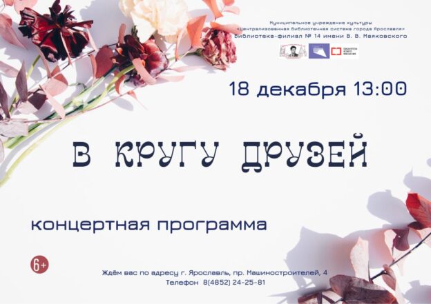 18 декабря в 13:00 в библиотеке-филиале № 14 имени В. В. Маяковского состоится концертная программа «В кругу друзей».