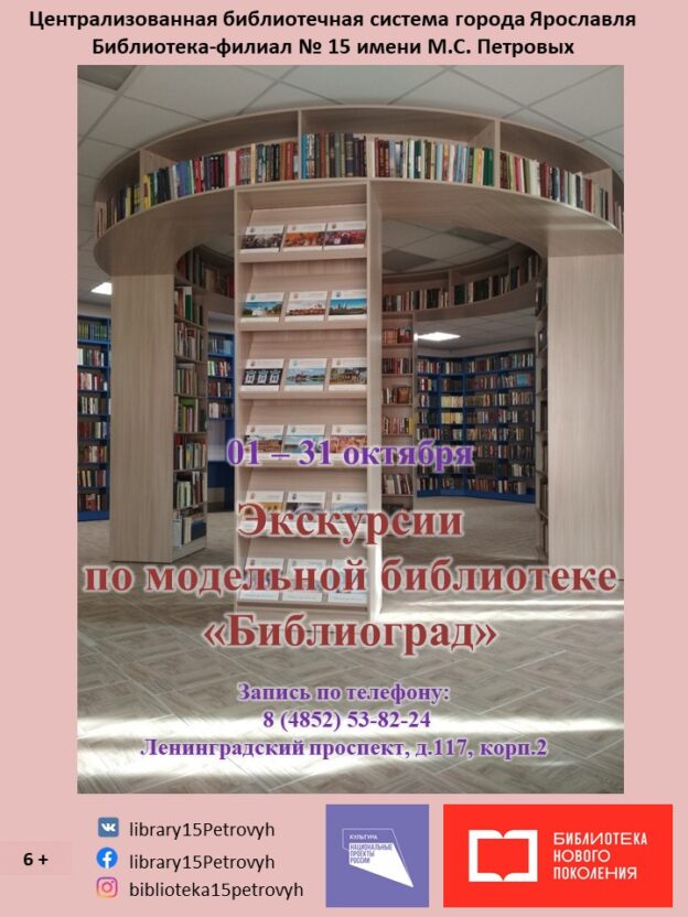 Библиотека-филиал № 15 имени М. С. Петровых с 1 по 31 октября приглашает на экскурсии по первой модельной библиотеке Ярославля.