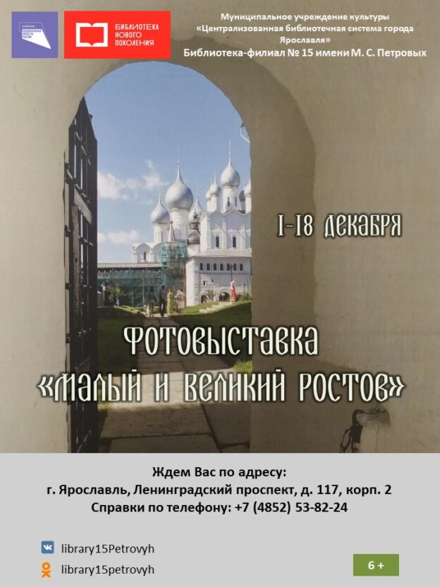 С 1 по 18 декабря в библиотеке-филиале № 15 имени М. С. Петровых будет работать фотовыставка «Малый и Великий Ростов».
