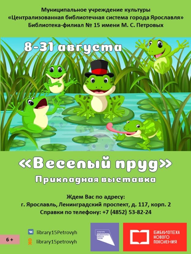 С 8 по 31 августа в библиотеке-филиале № 15 имени М. С. Петровых будет работать прикладная выставка «Веселый пруд».