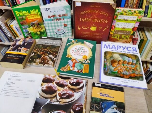 Вниманию читателей была предложена книжная выставка, на которой были представлены книжные новинки, каждая со своими «Сладкими историями». Большой популярностью пользовалась «Поваренная книга Гарри Поттера» Дины Бухольц, которая делает готовку «а-ля Хогвартс» такой же простой, как яблочный пирог.