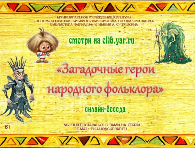 Библиотека-филиал № 16 имени А. С. Пушкина предлагает вниманию читателей онлайн-беседу «Загадочные герои народного фольклора».