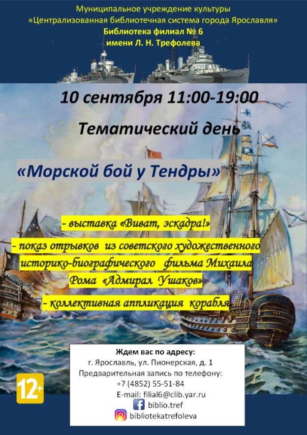 10 сентября 11:00-19:00 библиотека-филиал № 6 имени Л. Н. Трефолева приглашает посетить тематический день «Морской бой у Тендры».