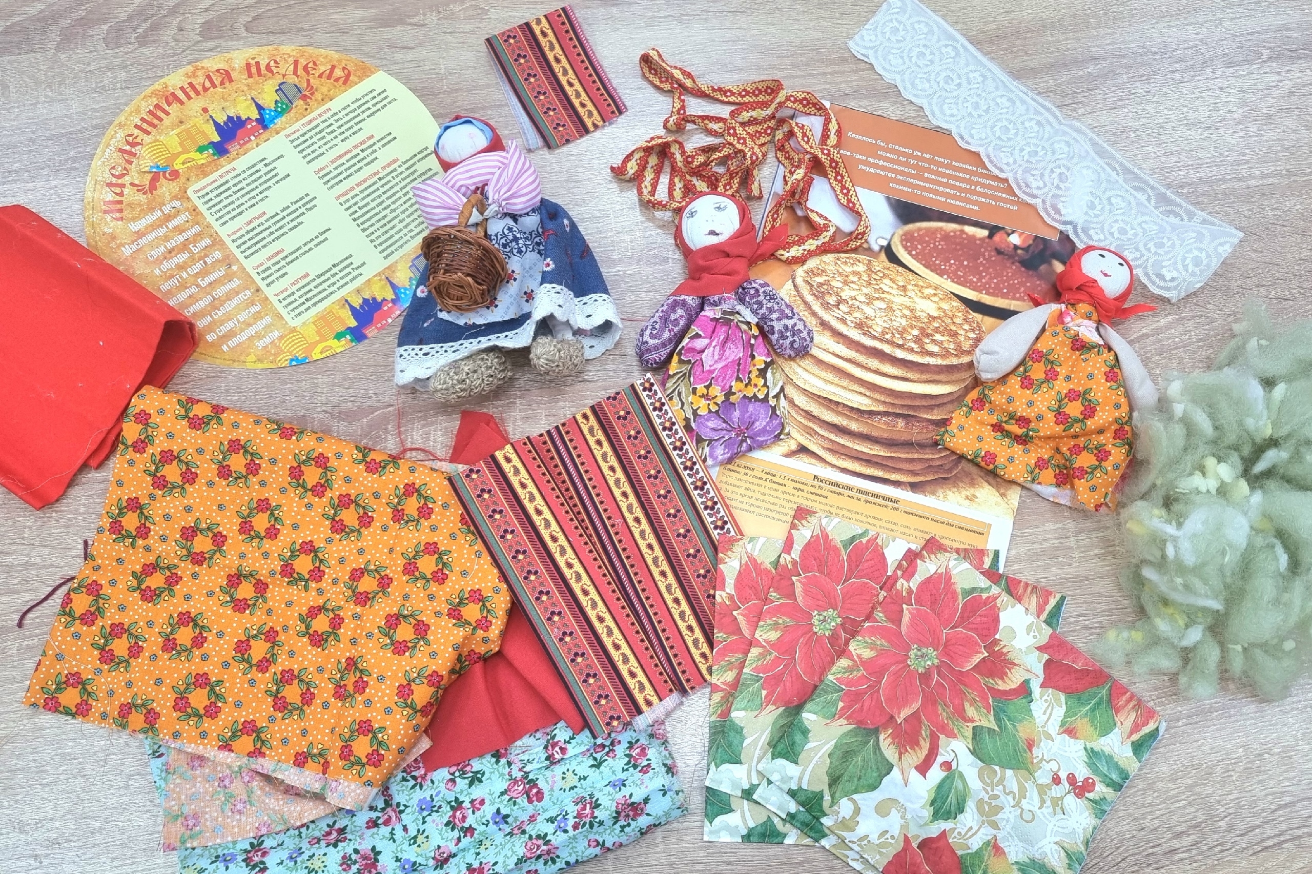 Ещё одна интересная традиция празднования Масленицы связана с изготовлением оберегов-куколок. Их делали из разных материалов: соломы, веточек деревьев, тканей и ниток.