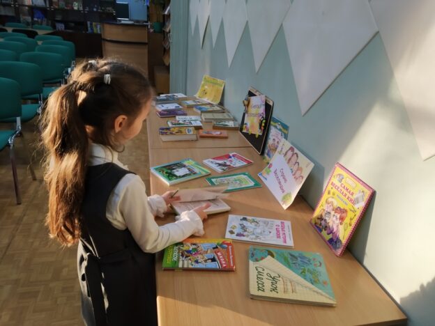 На веселых выставках «Смехотерапия» и «Страна веселия» расположились юмористические и озорные рассказы, истории и стихи, книги современных писателей юмористов. В читальном зале в течение дня был организован показ юмористических программ.