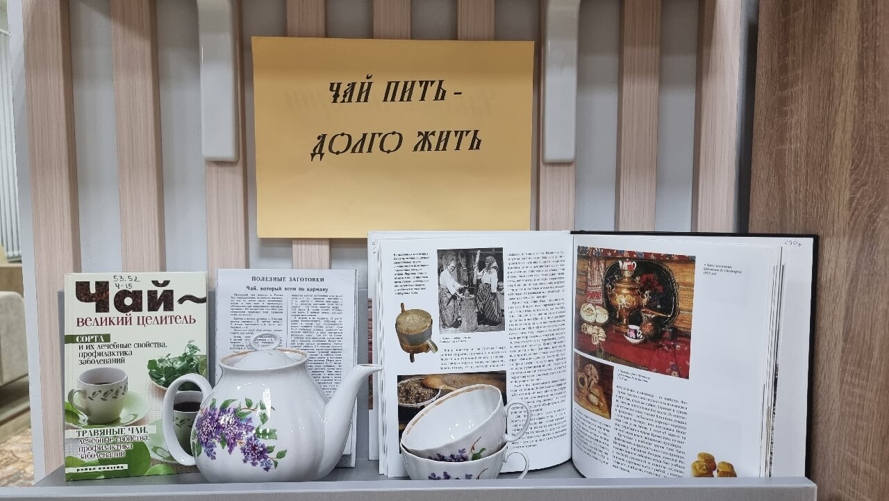 Выставка «Чай пить — долго жить» раскрыла перед посетителями всю глубину значения чая, продемонстрировала искусство его заваривания и полезные свойства напитка. Библиотекари поделились собственными рецептами изготовления травяных чаёв из смородины, малины, липового цвета и особенно подчеркнули уникальные достоинства Иван-чая, а также тонкости его обработки методом ферментации.