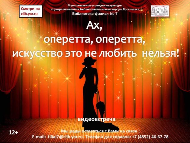 27 марта библиотека-филиал № 7 приглашает на видеовстречу «Ах, оперетта, оперетта, искусство это не любить нельзя!»
