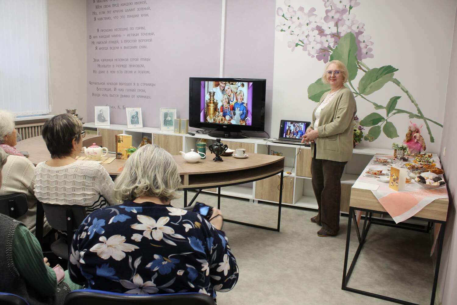 11 декабря в библиотеке-филиале № 8 имени К.Д. Бальмонта состоялась встреча в литературно-музыкальной гостиной «За чаем не скучаем – по семь чашек выпиваем», посвящённая Международному дню чая. Заведующая сектором нестационарного обслуживания Центральной библиотеки Ирина Ивановна Новикова познакомила наших гостей с историей традиции русского чаепития и роли Великого чайного пути, пролегающего по территории Китая, Монголии, Сибири и Урала. Также И.И. Новикова рассказала о том, как возникло понятие «кяхтинский чай», почему чай называют «байховым» и почему Нижний Новгород называли в 19 веке «чайной столицей России».