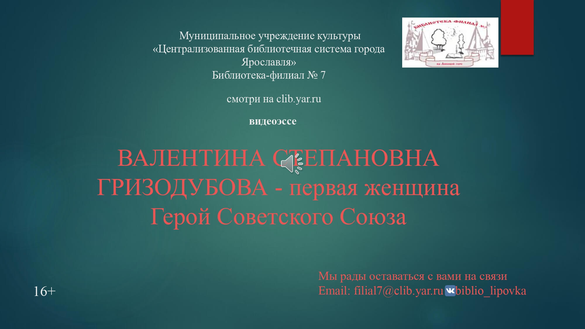 Видеоэссе «Валентина Гризодубова – первая женщина, герой Советского Союза»