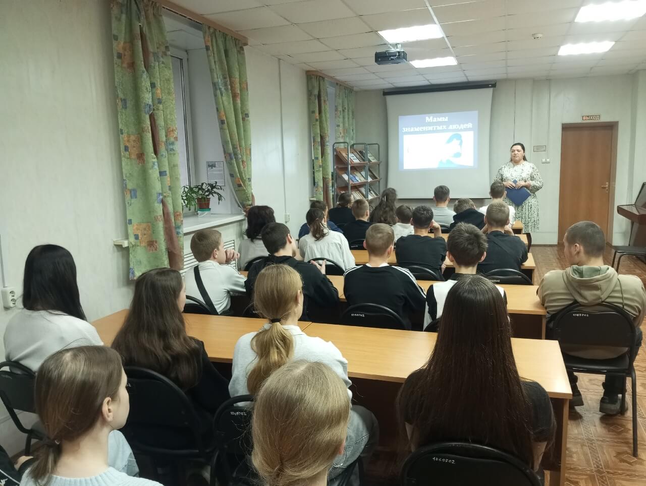 В Центральной библиотеке имени М.Ю. Лермонтова сотрудники провели литературную встречу «Матери великих: от строк до страниц». Читатели познакомились с биографиями великих женщин–матерей русских поэтов и писателей: Сергея Есенина, Александра Блока, Николая Некрасова, Михаила Булгакова, Николая Гоголя, Константина Бальмонта, Корнея Чуковского. Судьбы этих женщин не всегда были простыми и счастливыми, но все они отдали частицу сердца и души своим детям, которые стали настоящими мастерами слова. Состоялось обсуждение образа женщины-матери в таких произведениях русской литературы, как повесть «Детство» Льва Толстого, роман «Тихий Дон» Михаила Шолохова, поэма «Матерь человеческая» Виталия Закруткина.