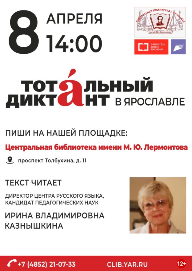 8 апреля в 14:00 в Центральной библиотеке имени М. Ю. Лермонтова состоится Ежегодная просветительская акция «Тотальный диктант».