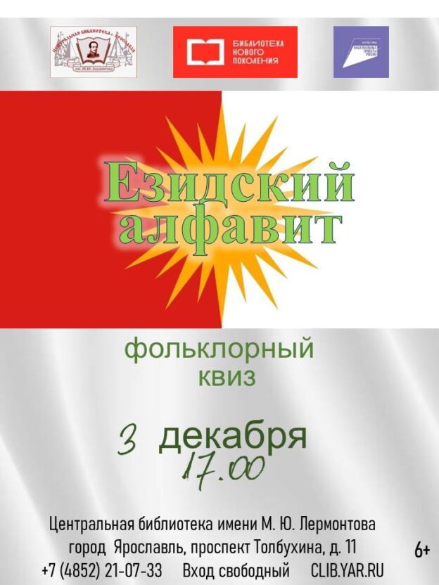 3 декабря в 17:00 в Центральной библиотеке имени М. Ю. Лермонтова состоится фольклорный квиз «Езидский алфавит».