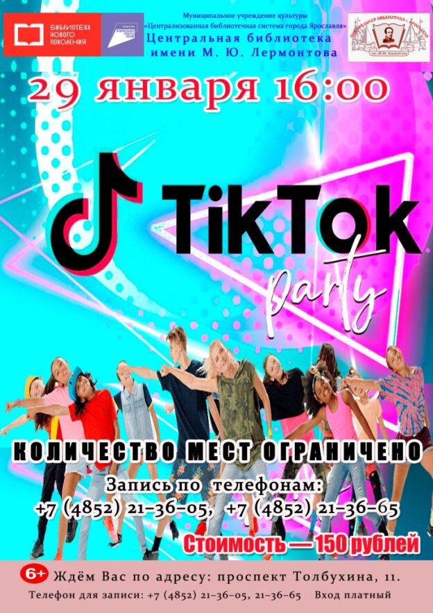 29 января в 16:00 Центральная библиотека имени М. Ю. Лермонтова приглашает принять участие в игровой программе TikTok Party.