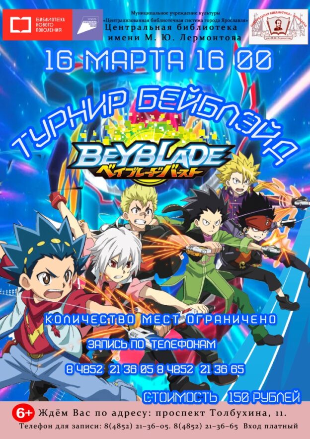 16 марта в 16:00 Центральная библиотека имени М. Ю. Лермонтова приглашает принять участие в игровой программе «Турнир по Бейблэйд».