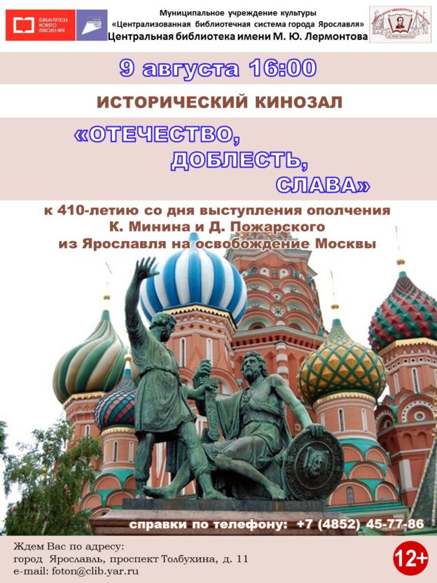 9 августа в 16:00 Центральная библиотека имени М. Ю. Лермонтова приглашает всех желающих в исторический кинозал «Отечество, доблесть, слава».
