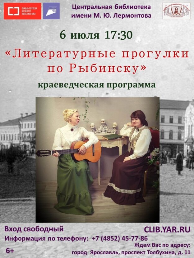 6 июля в 17:30 Центральная библиотека имени М. Ю. Лермонтова приглашает на краеведческую программу «Литературные прогулки по Рыбинску».