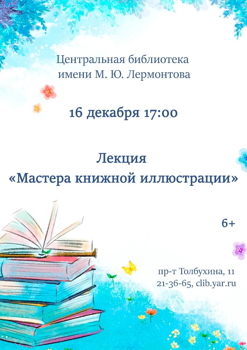 16 декабря в 17:00 в Центральной библиотеке имени М.Ю. Лермонтова состоится лекция научного сотрудника Ярославского художественного музея Усковой Анастасии «Мастера книжной иллюстрации»