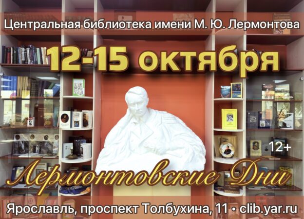 - 15 октября 10:00-18:00 ЛЕРМОНТОВСКИЙ ДЕНЬ В БИБЛИОТЕКЕ 12+ 12:00, 15:00, 18:00 — Обзор лермонтовской коллекции