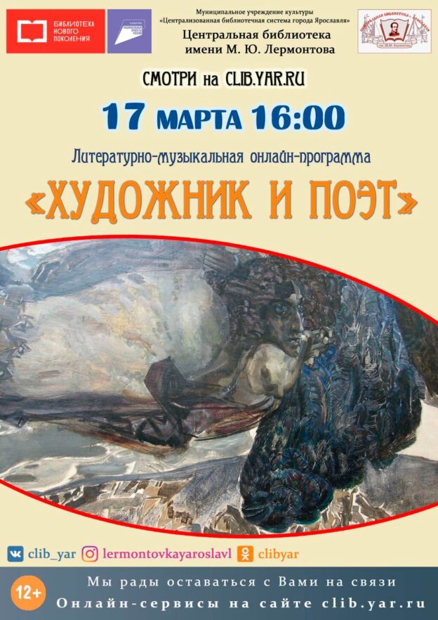 17 марта в 16:00 Центральная библиотека имени М. Ю. Лермонтова приглашает на литературно-музыкальную онлайн-программу «Художник и Поэт», посвящённую 165-летию со дня рождения Михаила Врубеля.