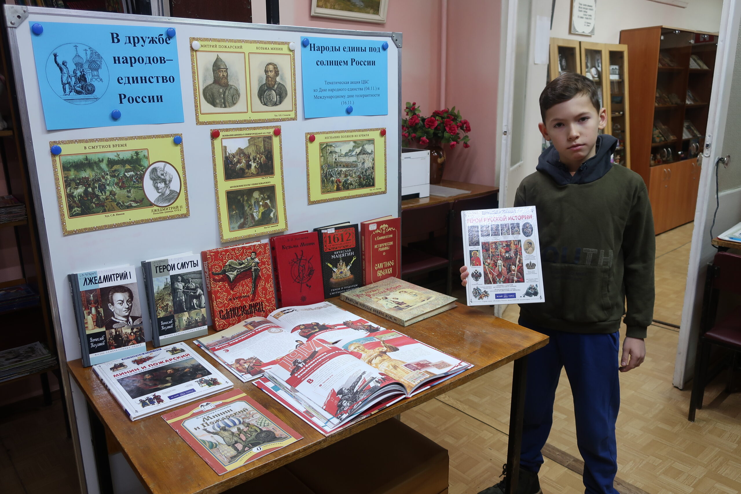 Сотрудники библиотеки-филиала № 1 подготовили и провели патриотический урок «Историческая память народа. Смутное время». Цикл патриотических бесед для детей «Мы силой единой равны» прошёл в обновлённых залах библиотеки-филиала № 7. Маленькие посетители совершили увлекательную экскурсию по залам модельной библиотеки, а также узнали о событиях 1612 года и значении праздника — День народного единства.