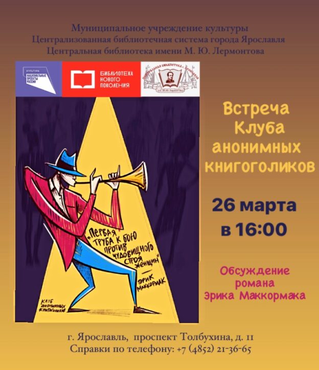 26 марта в 16:00 в Центральной библиотеке имени М. Ю. Лермонтова в зале краеведения состоится очередная встреча в Клубе анонимных книгоголиков.