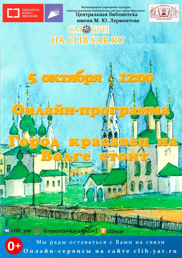 5 октября в 12:00 Центральная библиотека имени М. Ю. Лермонтова представляет вашему вниманию онлайн-программу «Город красавец на Волге стоит».