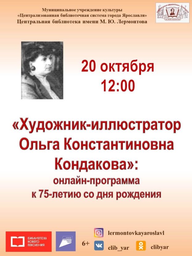 20 октября в 12:00 Центральная библиотека имени М. Ю. Лермонтова приглашает на онлайн-программу «Художник-иллюстратор Ольга Константиновна Кондакова», приуроченную к 75-летию художницы.