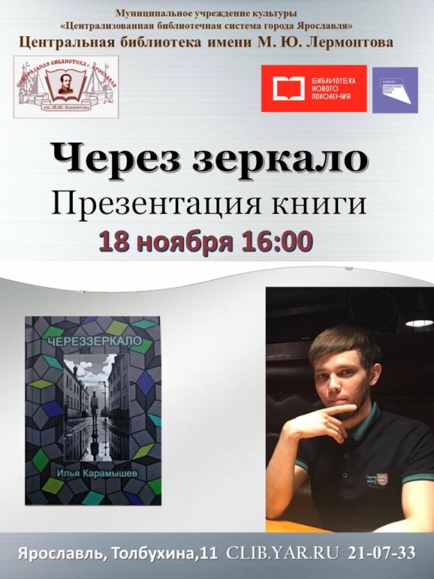18 ноября в 16:00 в Центральной библиотеке имени М. Ю. Лермонтова состоится презентация новой книги Ильи Карамышева «Через зеркало».