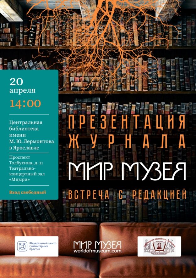 20 апреля в 14:00 в Центральной библиотеке имени М. Ю. Лермонтова состоится презентация журнала «Мир Музея» — старейшего иллюстрированного исторического и художественного журнала в России, посвящённого жизни российских и зарубежных музеев.