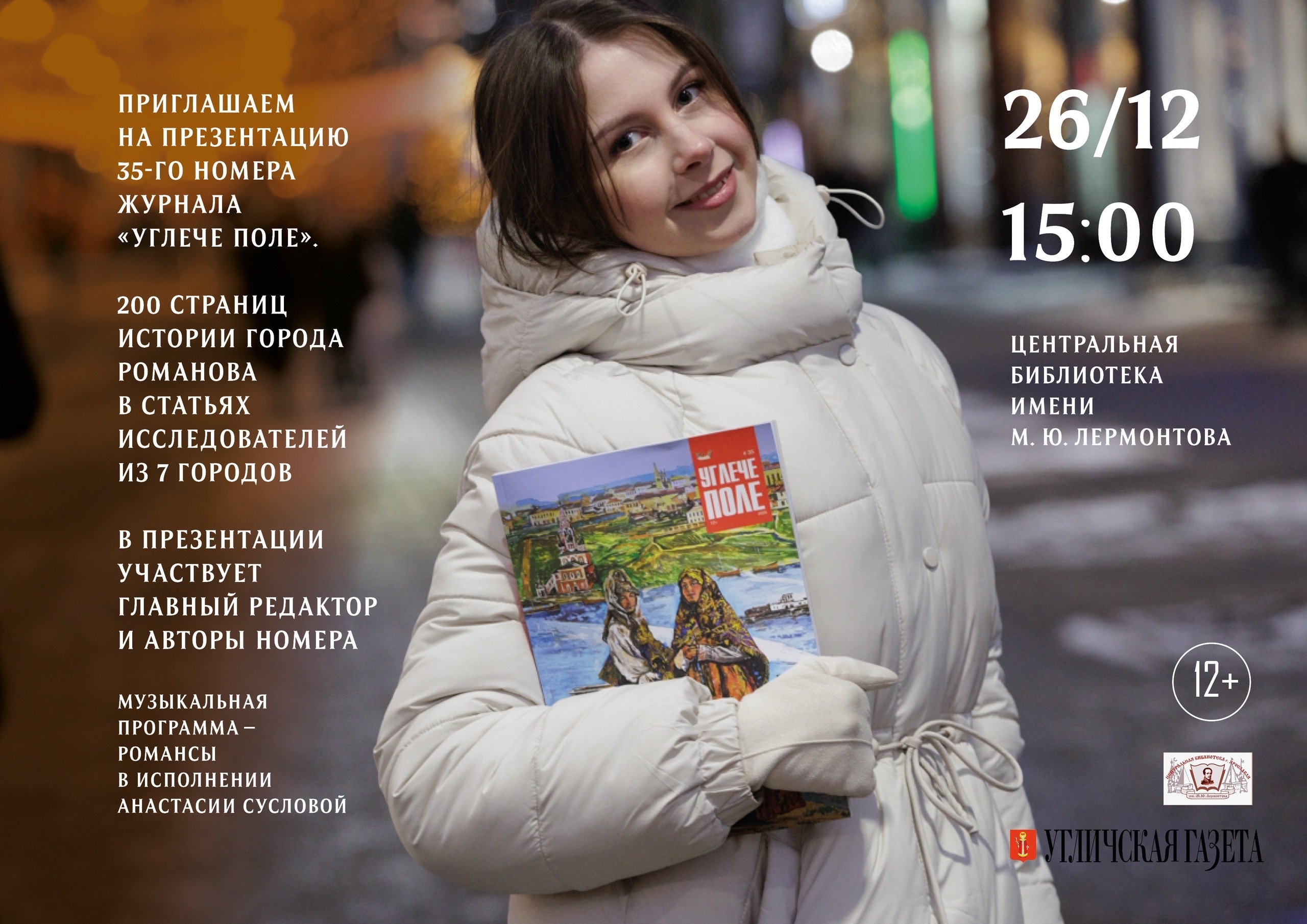 В Центральной библиотеке имени М. Ю. Лермонтова 26 декабря 15:00 с участием главного редактора и авторов состоится презентация 35-го журнала УГЛЕЧЕ ПОЛЕ