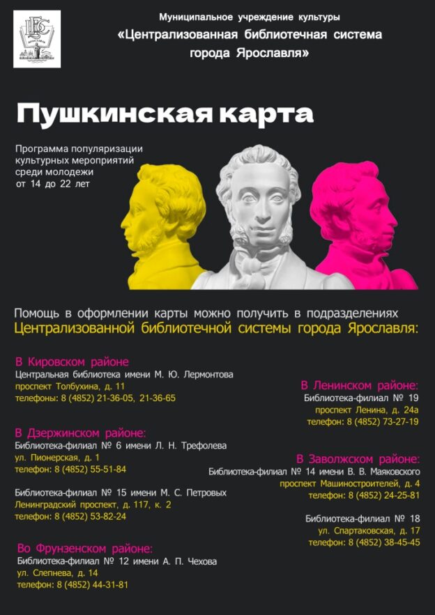 Помощь в оформлении карты можно получить в подразделениях Централизованной библиотечной системы города Ярославля: