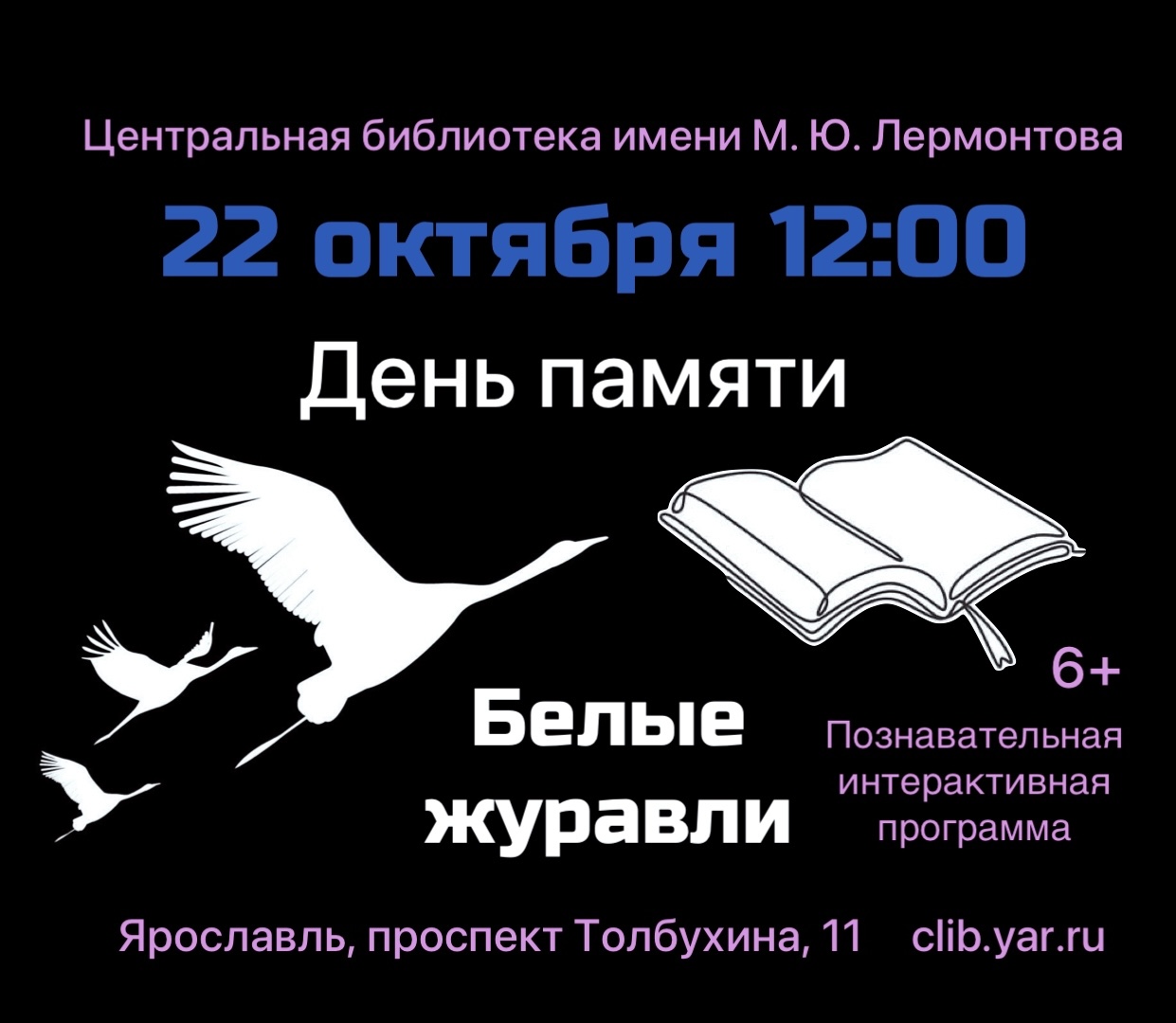 22 октября в 12:00 в Центральной библиотеке имени М. Ю. Лермонтова пройдет день памяти «Белые журавли»