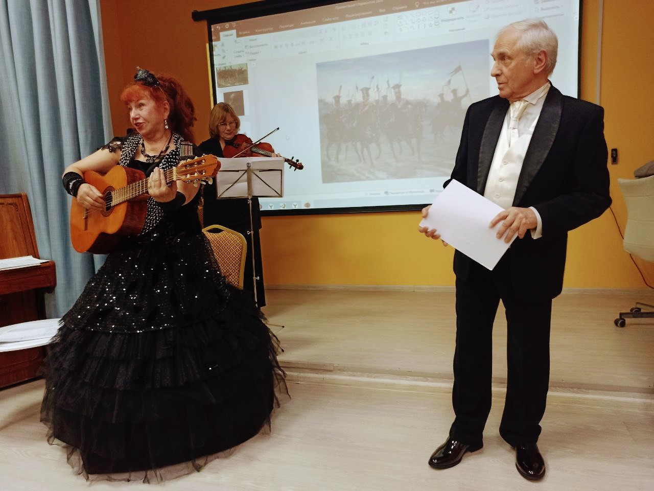 В исполнении артистов под руководством Людмилы Грибовой звучали стихи Михаила Юрьевича Лермонтова, рассказ о его жизни, увлечениях, романах, старинные песни и романсы под гитару и альт.