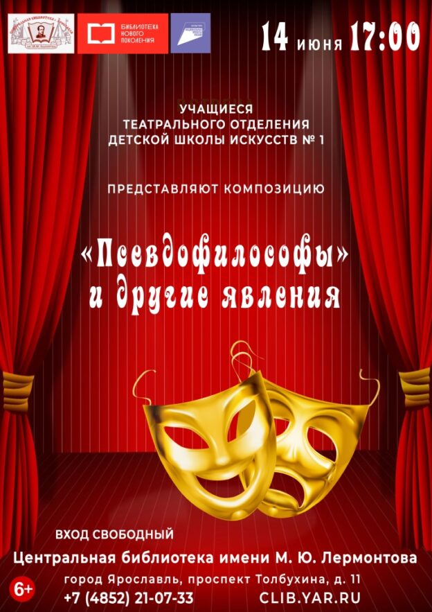 14 июня 2023 года в 17 часов в Центральной библиотеке имени М. Ю. Лермонтова состоится театральный вечер «“Псевдофилософы” и другие явления».