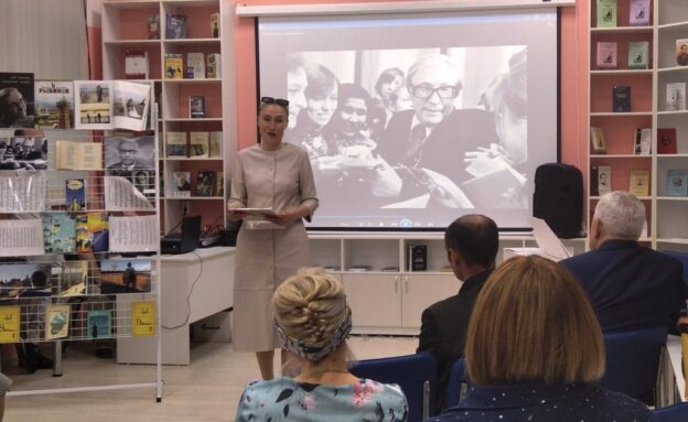 О противоречивой судьбе Л. Ошанина рассказала гостям встречи Наталья Севостьянова, известная постоянным читателям библиотеки по ранее представленному ею фильму о судьбе дворянских усадеб нашего края. В ходе диалога, носящего название «Темная сторона Солнца», аудитории были представлены факты из официальной биографии поэта и информация, ранее замалчиваемая при подготовке биографических материалов о поэте. Открывшие факты дали возможность читателям ответить для себя на вопрос о влиянии информации о жизни выдающихся людей, не всегда позитивной, на восприятие их творчества. Гостям встречи также было предложено осудить эту проблему. Каждый читатель вправе определять сам для себя приоритеты – на этом сошлись все участники обсуждения.
