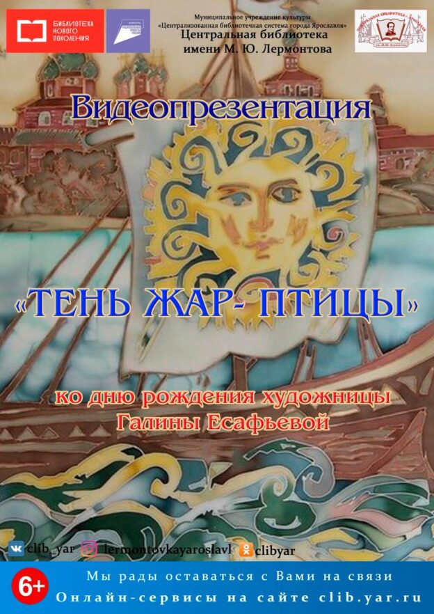 Центральная библиотека имени М. Ю. Лермонтова представляет видеопрезентацию «Тень Жар-птицы» ко дню рождения художницы Галины Есафьевой.