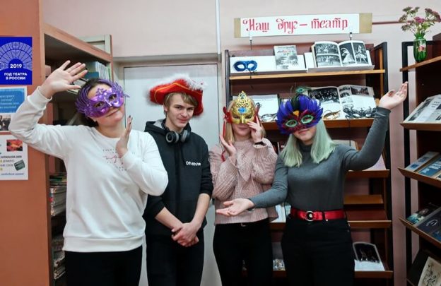 В библиотеке работала выставка-диалог «Наш друг — театр». Читателям предлагалось сопоставить героев книг с театральными масками, вспомнить названия самых крупных театров мира, назвать интересные спектакли, поставленные на сцене театра имени Фёдора Волкова. Рядом с выставкой проходила фотосессия «Удивительные маски», в которой каждый смог почувствовать себя участником театрализованного карнавала или актёром спектакля, поставленного по пьесе Шекспира.